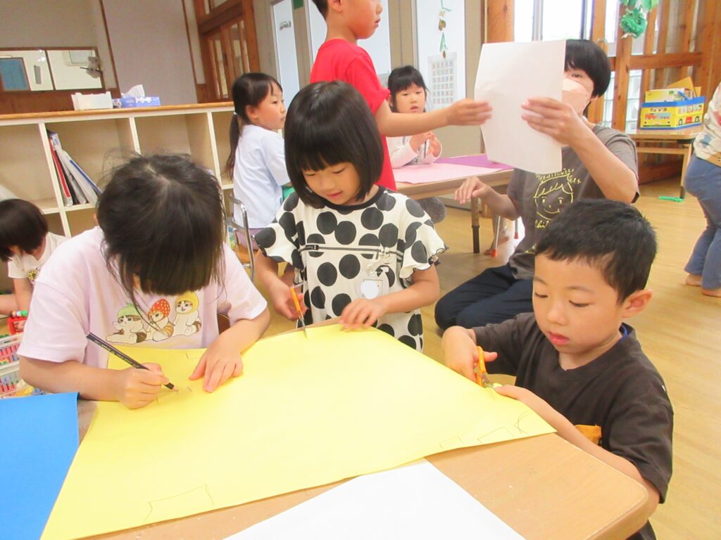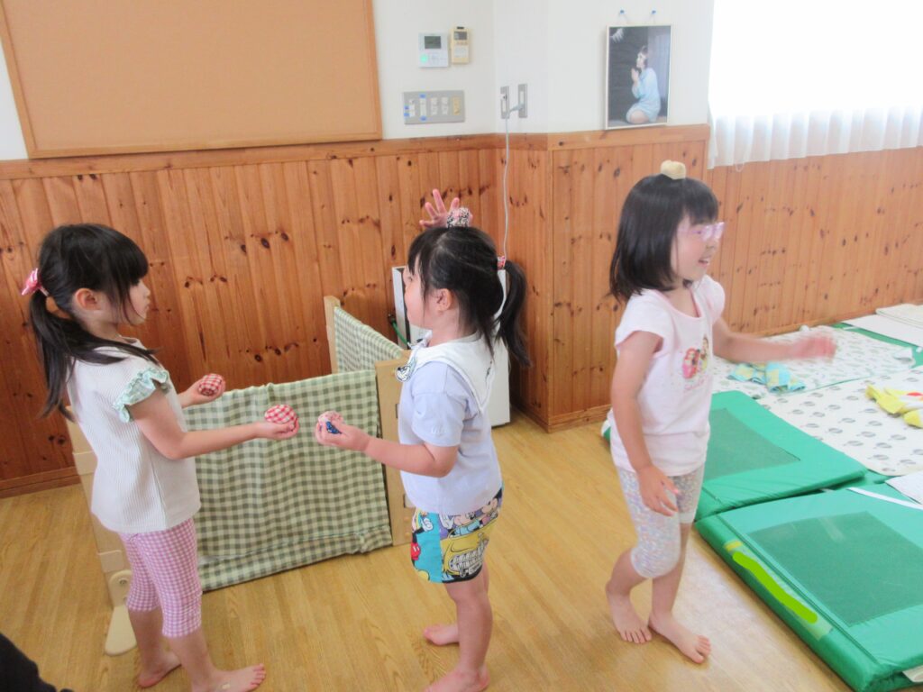 と話が広がり、ひかり組(5歳児)が中心となって7月19日のわいわいあそぼうデーでサーカスをすることになりました。