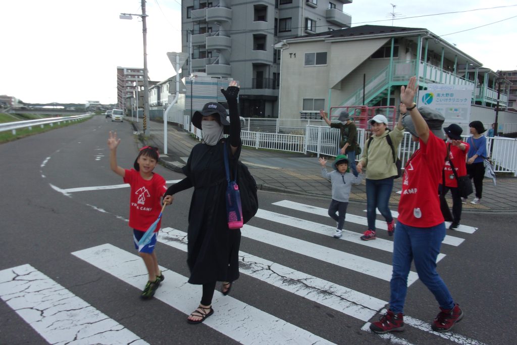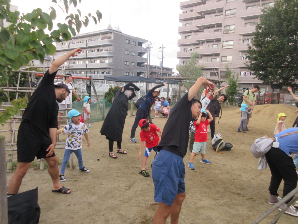 準備体操をしっかりして近くの笊川へ生き物・宝物を探しへGO!!