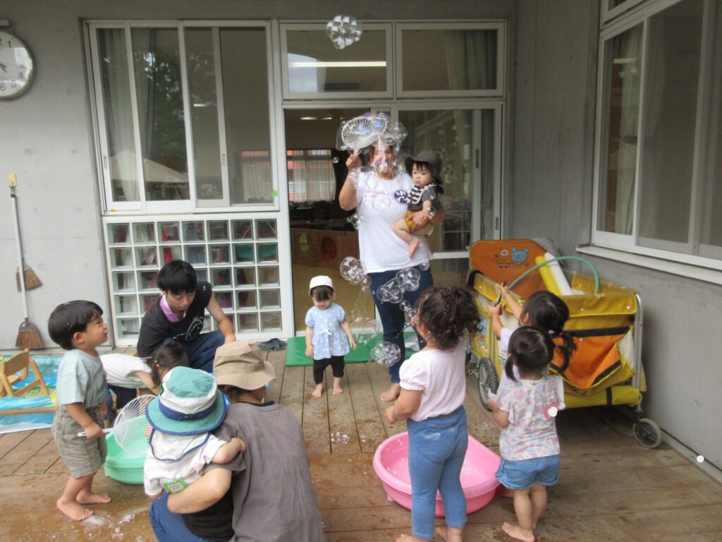 大きなしゃぼん玉が出来上がると子どもも大人も歓声を上げて楽しんでいました!